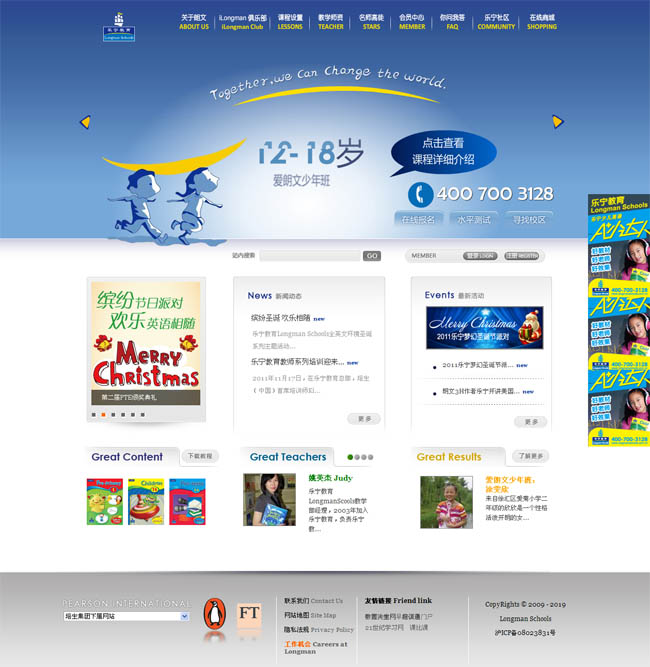 項目背景:2008年11月上海著名英語培訓機構--樂寧教育攜手世界著名教育出版品牌朗文成立了樂寧教育Longman Schools。朗文教育品牌擁有285年的英語教育出版、培訓歷史,全球涵蓋110個國家、超過5億人使用朗文教材學習英語。很多教育產品在中國已是家喻戶曉,如《朗文字典》、《新概念英語》、《走遍美國》、《SIDE BY SIDE》等。憑借朗文優(yōu)質的教育資源和對中國教育市場的發(fā)展戰(zhàn)略及投入,樂寧教育Longman Schools立志將創(chuàng)新的教育理念帶給中國家庭,打造中國青少年兒童英語教育的第一品牌。