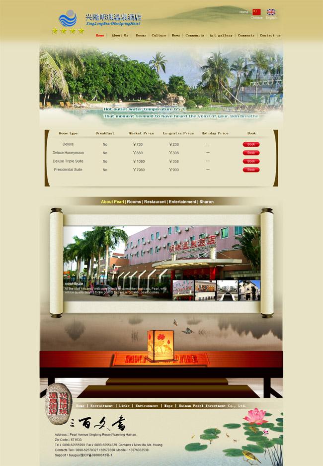 案例背景:隆明珠溫泉酒店是浙江海地投資置業(yè)有限公司于2007年3月在海南購(gòu)置的一家酒店。酒店占地66600平方米,由一棟主樓、一座大型綜合娛樂(lè)城及34棟各式別墅組成,酒店建有三棟豪華別墅,配有總統(tǒng)套等各式套房2套。酒店擁有各式客房400間,以及中餐廳、西餐廳、大堂吧及娛樂(lè)酒吧,擁有多功能會(huì)議廳、購(gòu)物商場(chǎng)及商務(wù)中心,擁有興隆地區(qū)獨(dú)一無(wú)二的日式風(fēng)格的大型溫泉泳池、夜總會(huì)、網(wǎng)球場(chǎng)、健身中心、桑拿按摩、商場(chǎng)等,并可為來(lái)賓提供濱海高爾夫球休閑運(yùn)動(dòng)服務(wù),酒店可為來(lái)賓提供出租車、送餐、洗衣、托嬰、殘疾人服務(wù)等。酒店?duì)I業(yè)以來(lái),科學(xué)、合理、優(yōu)化的管理,不斷提高服務(wù)水平,使酒店在激烈競(jìng)爭(zhēng)的旅游市場(chǎng)上迅速具備了較高的知名度和美譽(yù)度;微笑服務(wù)、拾金不昧、殘疾人服務(wù)等贏得了賓客的廣泛贊譽(yù),被評(píng)為“海南省96-97文明單位”,98年“海南省十佳旅游飯店”。 興隆明珠溫泉酒店多次接待了世界許多國(guó)家重要領(lǐng)導(dǎo)人貴賓以及新西蘭、馬來(lái)西亞、法國(guó)、德國(guó)等到國(guó)駐華大使。曾經(jīng)在接待人大常委會(huì)委員長(zhǎng)李鵬等領(lǐng)導(dǎo)人時(shí),李鵬委員長(zhǎng)還為酒店題詞“明珠春暖椰島,溫泉旅游勝地”!