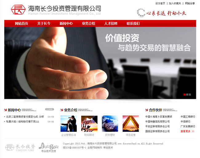 案例背景:海南長今投資管理有限公司成立于2010年3月,注冊資本貳佰萬元人民幣,主營企業(yè)管理咨詢、財務顧問、投資理財及項目經(jīng)營等業(yè)務。公司合伙人具有資深的金融從業(yè)背景,擁有多名金融投資及咨詢行業(yè)的高級專家組成的管理團隊和顧問支持,與國內數(shù)家大型金融機構保持業(yè)務合作關系,將致力于為海南中小企業(yè)提供廣泛靈活的管理咨詢、項目投融資服務。