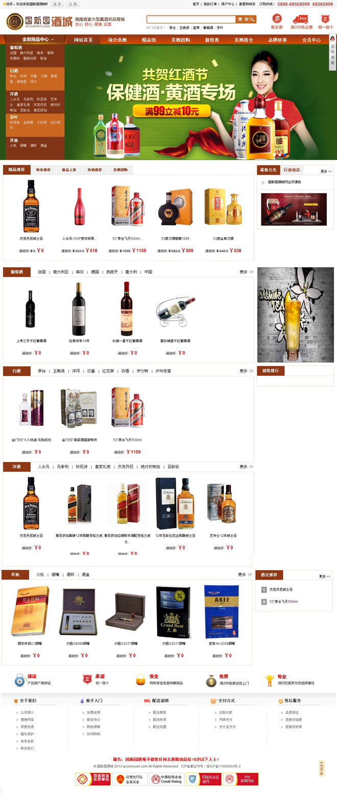 目前國新酒類名煙連鎖共有八家分店,其中三亞迎賓店為是三亞市規(guī)模大、讓消費(fèi)者放心的酒類名煙購物中心。國新連鎖??谄炫灥辍?趪聢@酒莊則是目前海南省大型,種類超繁的煙酒名品購物中心,同時(shí)也是海南國際旅游島建設(shè)中的配套項(xiàng)目之一。國新人積極拼搏,勇于創(chuàng)新,力爭營業(yè)網(wǎng)點(diǎn)遍布海南省各市縣,能夠?yàn)楦嗟南M(fèi)者提供優(yōu)質(zhì)便捷服務(wù),也為規(guī)范海南省酒類市場貢獻(xiàn)一份力量,終成為海南省家喻戶曉的知名品牌。